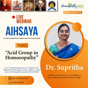 Join Upcoming Webinar “Acid group in homoeopathy” with Dr Supritha