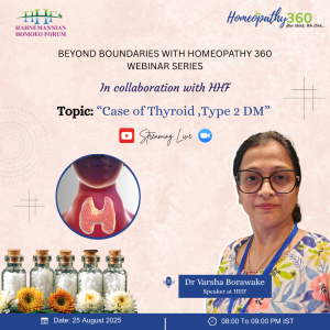 “Teach Beyond Boundaries with Homeopathy 360 In Collaboration with HHF” Join us for an enriching live webinar with Dr Varsha Borawake on “Case of Thyroid, Type 2 DM.” Title: “Case of...