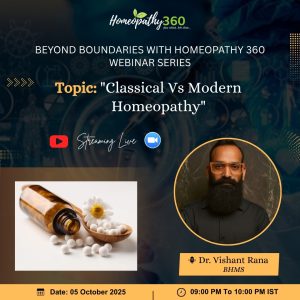“BEYOND BOUNDARIES WITH HOMEOPATHY 360″ Join us for an enriching live webinar with Dr Vishant Rana on “Classical Vs Modern Homeopathy” Title: “Classical Vs Modern...
