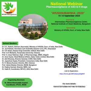 National Webinar on Pharmacovigilance of ASU & H Drugs “AYUSHSURAKSHA – 2020”