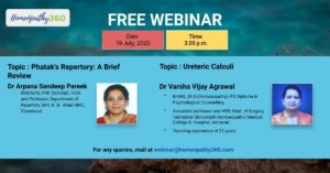 Homeopathy 360 Free Webinar Speakers: Dr Arpana Sandeep Pareek MD(Hom), PhD (Scholar). HOD and Professor, Department of Repertory, Smt. K. B. Abad HMC, Chandwad. Topic: Phatak’s...