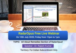 RADAR Opus Free Live Webinar On Remedies Section Of RADAR Opus Speaker: Dr Rajesh Kumar Date: 10 July 2020 Time: 12 pm to 1 pm...