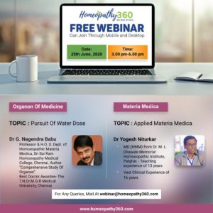 Homeopathy 360 Homeopathic Learning Series Date: 25 June 2020 Time: 3 pm to 6 pm Session 1: Organon Of Medicine Speaker 1: Dr G. Nagendra...