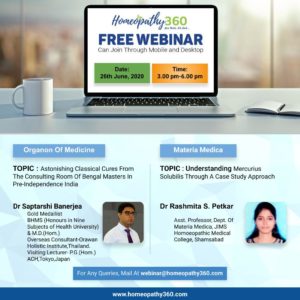 Homeopathy 360 Homeopathic Learning Series Date: 26 June 2020 Time: 3 pm to 6 pm Session 1: Organon Of Medicine Speaker 1: Dr Saptarshi Banerjea,...