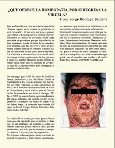 ¿QUE OFRECE LA HOMEOPATÍA, POR SI REGRESA LA VIRUELA?