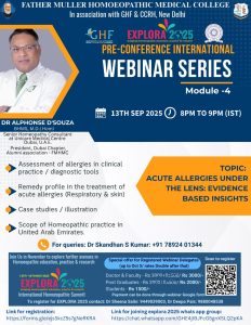 Father Muller Homoeopathic Medical College ✨ 🎉 Explora 2025 – Pre-Conference International Webinar (Module 4) 🗓 13th Sept 2025 (Saturday)⏰ 8.00 PM – 9:00 PM...