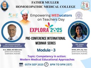 Father Muller Homoeopathic Medical College 🌟 🎉 Explora 2025 – Pre-Conference International Webinar (Module 3)👩🏫 Teachers’ Day Special 🗓️ 5th Sept 2025 (Friday)⏰ 8.00PM –...