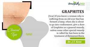 Graphites Today Clinical Tips: Dr. J.T. Kent GRAPHITES: (Scar) If you know a woman who is suffering from an old scar that has formed a...