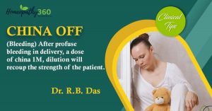 China Off: Dr. B. Prasad Gupta CHINA OFF: (Bleeding) After profuse bleeding in delivery, a dose of china 1M, dilution will recoup the strength of...