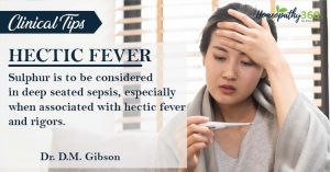 Sulphur is to be considered in deep seated sepsis, especially when associated with hectic fever and rigors. Searching tags: #Hectic, #Fever, #HecticFever, #DrDMGibson, #homeopathy, #homeopathic,...