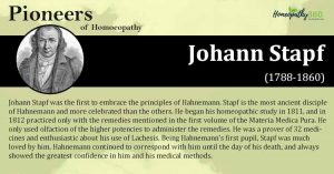 Stalwarts’ Segment: Johann Stapf Born: 1788 Died: 1860 Read More: https://www.homeopathy360.com/stalwarts-segment-johann-stapf/ Johann Stapf was the first to embrace the principles of Hahnemann. Stapf is the...
