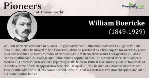 Stalwarts’ Segment: William Boericke Born: 1849 Died: 1929 William Boericke was born in Austria. He graduated from Hahnemann Medical College in Philadelphia in 1880, then...