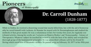 Stalwarts’ Segment: Dr. Carroll Dunham While in Dublin, he received a dissecting wound that nearly killed him, but with the aid of homoeopathy he cured...