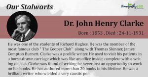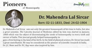 Stalwarts’ Segment: Dr. Mahendra Lal Sircar Born: 02-11-1833 Died: 24-02-1904 Dr. Mahendra Lal Sircar was not only the greatest homoeopath of his time in India,...