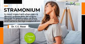 Stramonium: Clinical Tips by Dr. C.G. RaueIs most important when pain is almost unbearable, driving to despair. It ameliorates at once, and hastens benign suppuration....