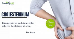 Cholesterinum: Clinical Tips by Dr. Swan It is specific for gall stone colic; relieves the distress at once. Searching tags: #Cholesterinum, #DrSwan, #Disease, #clinicaltips, #homeopathy,...