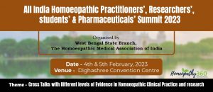 All India Homoeopathic Practitioners, Researchers’, students’ & Pharmaceuticals’ Summit 2023Organised by – West bengal State Branch, The Homoeopathic Medical Association of IndiaDate – 4th &...