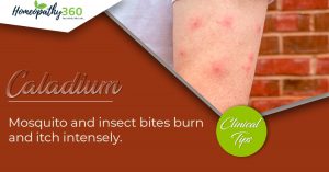 Caladium: Clinical Tips by Today Mosquito and insect bites burn and itch intensely. Searching tags: #Caladium, #Mosquito, #clinicaltips, #homeopathy, #homeopathic, #health, #healthcare, Read More Clinical...