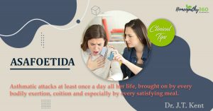 Asafoetida: Clinical Tips by Dr. J.T. Kent Asthmatic attacks at least once a day all her life, brought on by every bodily exertion, coition and...