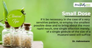 Small Dose: Clinical Tips by Dr. Hahnemann If it be necessary in the case of a very sensitive patient, to employ the smallest possible dose...