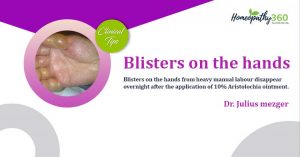 Aristolochi: Clinical Tips by Dr. Julius Mezger Blisters On the Hands from Heavy Manual Labour Disappear Overnight After the Application of 10% Aristolochia Ointment. Searching...