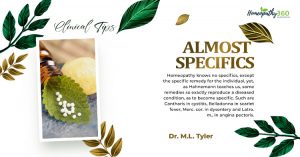 Almost Specifics: Clinical Tips by Dr. M.L. Tyler Homeopathy knows no specifics, except the specific remedy for the individual, yet, as Hahnemann teaches us, some...