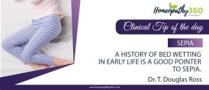 Sepia: Clinical Tips by Dr. T. Douglas Ross A history of bed wetting in early life is a good pointer to Sepia. [Dr. T. Douglas...