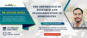 Topic: The importance of Research and Standardization in Homeopathy Date: 4th Feb 2022 Time slot: 4:30-5:30pm Speaker’s Name: Dr. Sutanu Patra Registration Link: https://event.webinarjam.com/register/454/ox5o9c0z Short...