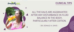 Kali Group: Clinical Tips by Dr. Donald A. Davis Kali Group: All the Kalis are aggravated after any disturbance in fluid balance in the body,...