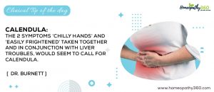 Clinical Tips for Today: Calendula – The 2 Symptoms ‘Chilly Hands’ And ‘Easily Frightened’ Taken Together And In Conjunction With Liver Troubles, Would Seem To...