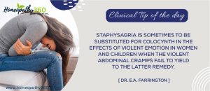 Clinical Tips for Today: Staphysagria Is Sometimes To Be Substituted For Colocynth In The Effects Of Violent Emotion In Women And Children When The Violent...