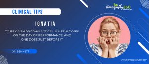 Clinical Tips for Today: Ignatia: To be given prophylactically a few doses on the day of performance, and one dose just before it. [Source:  –...