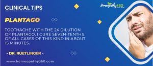 Plantago: Toothache with the 2X dilution of Plantago, I cure seven tenths of all cases of this kind in about 15 minutes. [Source:  – Dr....