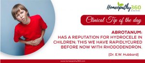 Clinical Tips for Today: Abrotanum: ABROTANUM has a reputation f or hydrocele i n children; this we have rapidly cured before now with RHODODENDRON… [Source:...
