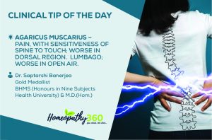 AGARICUS MUSCARIUS – Pain, with sensitiveness of spine to touch; worse in dorsal region. Lumbago; worse in open air. BY Dr. Saptarshi Banerjea Gold Medalist...