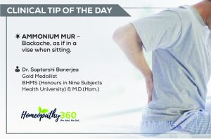 AMMONIUM MUR – Backache, as if in a vise when sitting. BY Dr. Saptarshi Banerjea Gold Medalist (BHMS (Honors in Nine Subjects of Health University)...