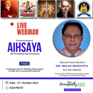 Join Upcoming Webinar On the occasion of AIHSAYA 15th Foundation Day Anniversary Topic: “Challenges faced by budding homoeopath in India and recommended solutions” Time: 8:30pm...