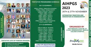 All India Homoeopathic Post Graduate Seminar 2023 – Integrating Tradition & Innovation in Homeopathy- Programme Schedule Link For Registration: https://forms.gle/RNeqju9ueKS37fHx8 About AIHPGS The AIHPGS 2023...