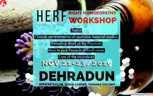 For Learners & lovers of Classical Homoeopathy, Hahnemannian Education And Research Forum (HERF)  organising a 3 DAY Workshop in Dehradun. Dates: 21-23 November 2019 Venue: Officer’s...