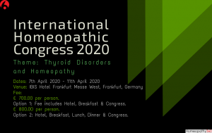 Dates: 7th April 2020 – 11th April 2020 Venue: IBIS Hotel Frankfurt Messe West, Frankfurt – Germany Dear Homeopath, We are pleased to invite you...