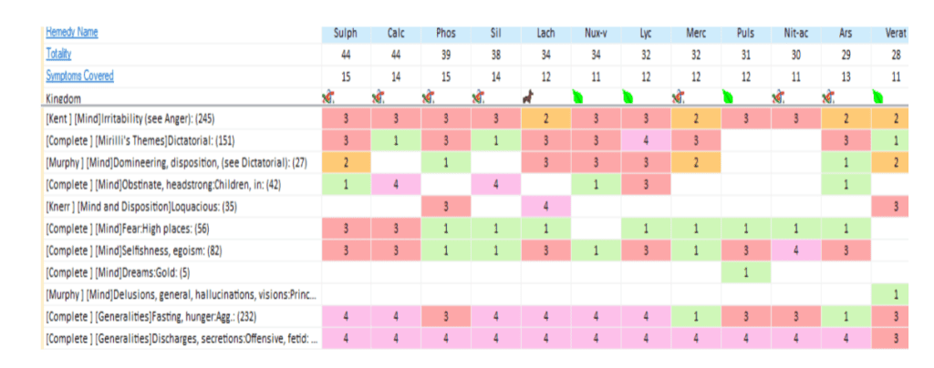 Repertorization Sheet: