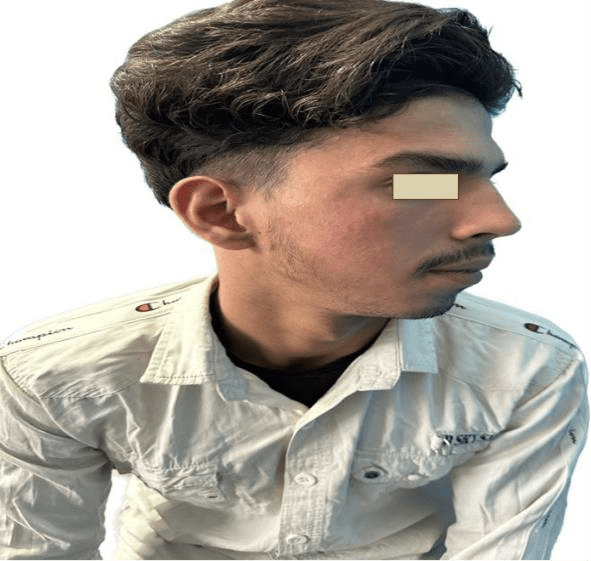 A 24-year-old male presented at Girendra Pal Homoeopathic Hospital & Research Centre with red, dry, intensely itchy herpetic eruptions on both cheeks, neck, and behind the ears. The clinical appearance correlated well with typical dermatophyte lesions of Tinea faciei¹,².