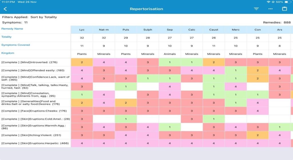 Homoeopathy aims to treat the whole individual based on the totality of symptoms, in accordance with Hahnemann’s principles described in the Organon of Medicine³. Repertorisation using modern tools like the Complete Repertory 2022 helps in selecting the most individualized remedy⁴.