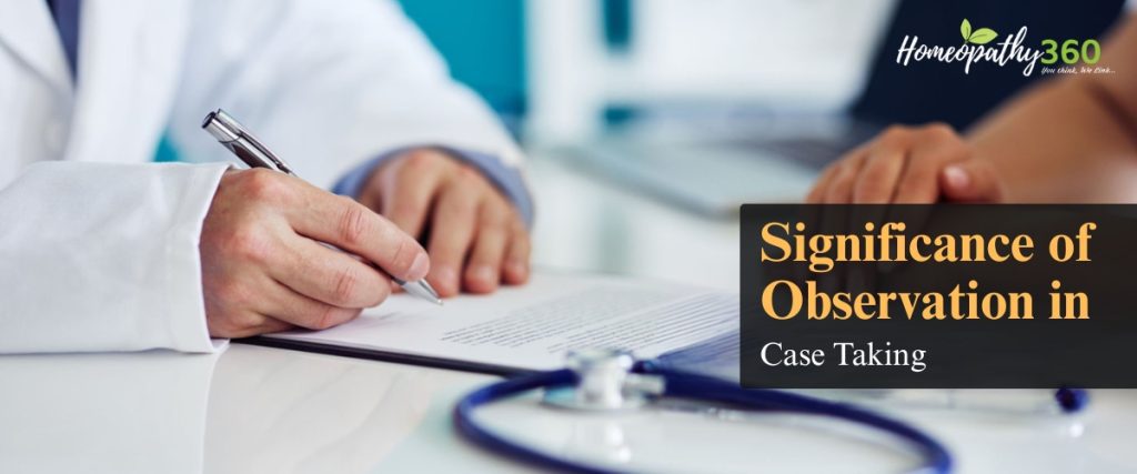 Depending on the circumstances and the patient’s condition, sometimes the observations made by the physician or the narration by the patient or information provided by the attendants alone may be sufficient to define the problem of the patient. And hence observation plays a significant role for a homeopath in successful case taking. [3]