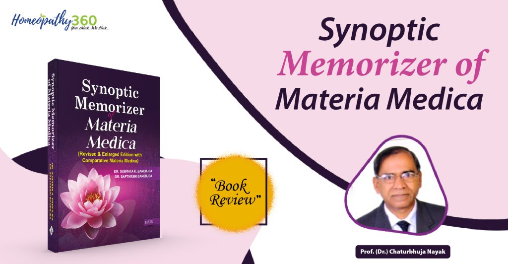 The book titled “Synoptic Memorizer of Materia Medica” is documented by two authors, Dr. Subrat Kumar Banerjea- the father and Dr. Saptarshi Banerjea-the son, who represent the fourth and fifth generation, respectively, of the famous Dr. Banerjea family of West Bengal. From the title of the book, many readers may interpret as if it only shows a shortcut way how to memorize the symptomatology of different homoeopathic medicines, particularly by the students to reproduce during examinations. But in reality, the book encompasses various areas covering Drug totality, Constitution, Diathesis, Miasms, Physical generals, Mental picture, Aetiology, Characteristic features, Theme & Essence (including Physical and Mental essence), Particular symptoms(system-wise), General and Particular Modalities, Drug Relationship, Dosage and finally, Questions for Viva Voce tests. Frankly speaking, I don’t remember having read any Materia Medica book in Homoeopathy, covering all these domains in one place. Realising the arduous task of memorizing the vast array of symptoms of polycrest drugs, the authors have presented most of them through MNEMONICS, which are extremely beneficial not only for the students, but also for the clinicians, teachers and all the professionals of Homoeopathy. Being the teachers of Homoeopathic Materia Medica of two generations, the authors know the difficulties faced by the students while appearing at the oral examinations in Homoeopathic Materia Medica. Therefore, they have introduced “Oral Questionnaire” at the end of each drug with correct answers. A new concept they have added is “Theme & Essence”, under each medicine, including ‘Physical Theme’ and ‘Mental Theme’, in which the essence of the drug is presented in a unique way to conceptualise, comprehend, and memorize easily.