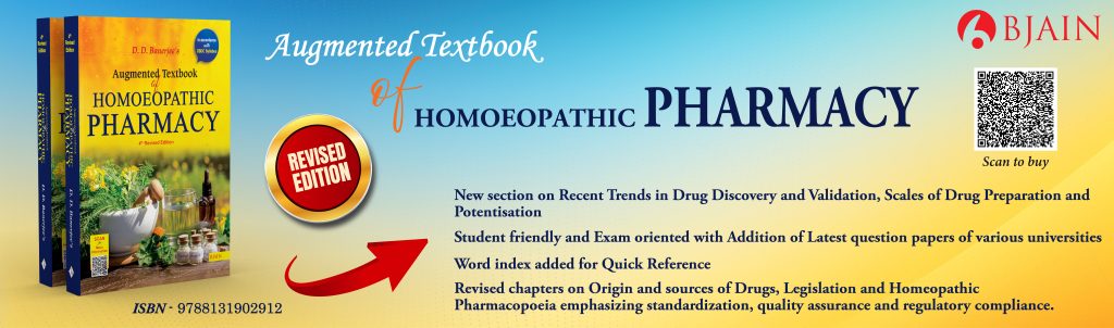 The Augmented Textbook of Homoeopathic Pharmacy – Fourth Revised Edition (2025) by Dr. D.D. Banerjee, published by B.Jain, is a thoroughly updated and refined volume aligned with the Competency-Based Dynamic Curriculum (CBDC) of the NCH. It seamlessly integrates classical homoeopathic principles with modern scientific perspectives. The edition features revised chapters on the Origin and sources of drugs, Legislation and the Homoeopathic Pharmacopoeia emphasizing standardization, quality assurance, and regulatory compliance. Clear explanations of Drug dynamisation and potentisation enhance conceptual and practical understanding. A notable addition is the section on recent trends in drug discovery and validation, introducing contemporary research and scientific evidence. Elaborate yet authoritative, student-friendly, and exam-oriented, this revised edition serves as an indispensable guide for learners and teachers alike.