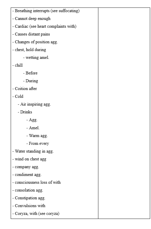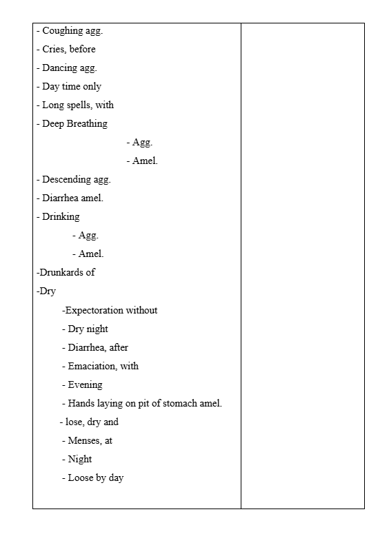 – Cough agg more towards night, from motion & better by complete rest, lying on the painful side.