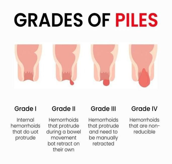 - Internal – Above dentate line, usually painless due to poor nerve supply. Presents with bright red bleeding, mucus discharge, or prolapse.