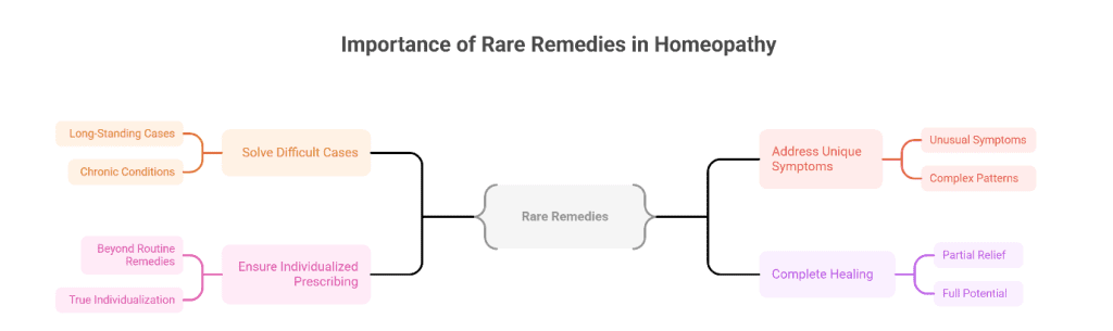 - Rare remedies are essential for solving difficult, chronic cases and ensuring individualized treatment.